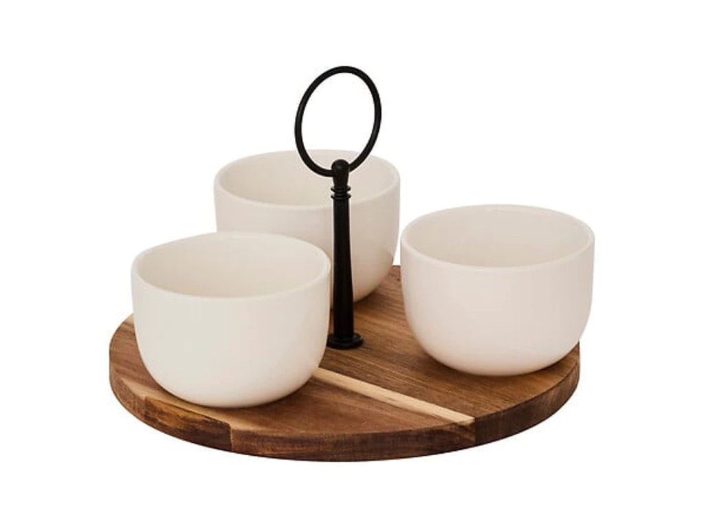 Biela servírovacia sada misiek s prídavkom dreva , je štýlovým a elegantným prvkom stolového riadu. Ideálny na servírovanie ovocia, koláčov alebo občerstvenia, kombinuje klasickú porcelánovú eleganciu s prirodzeným teplom dreva. Ideálne na slávnostné večierky a každodenné použitie.