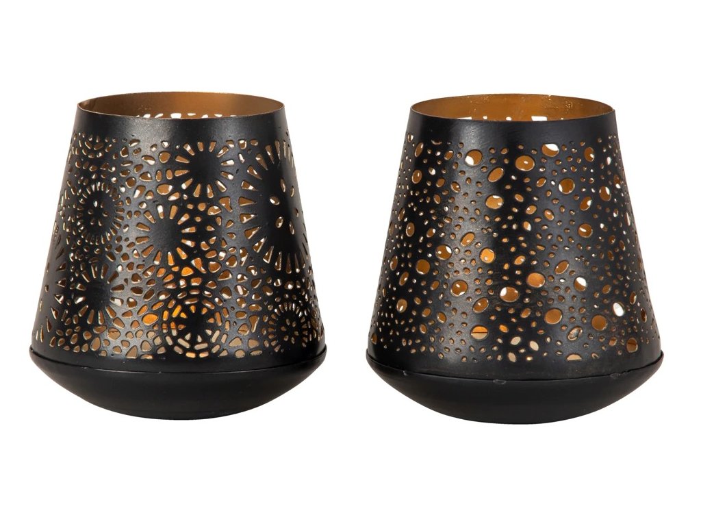 Kovový svietnik čierny, vnútro zlaté, výška: 12,5 cm, priemer: 11,5 cm, 2-krát rôznorodý