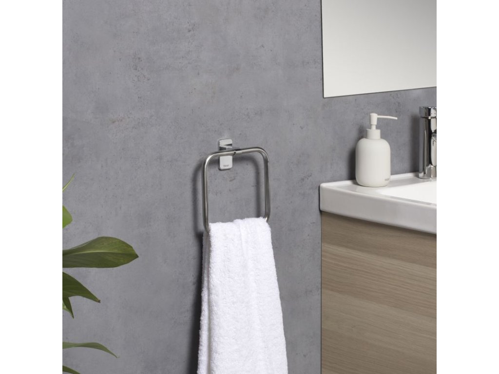 · MINIMALISTICKÝ DIZAJN: Držiak na uterák s chrómovou povrchovou úpravou v kombinácii s nehrdzavejúcou oceľou, ktorý dodá každej kúpeľni elegantný a diskrétny nádych.