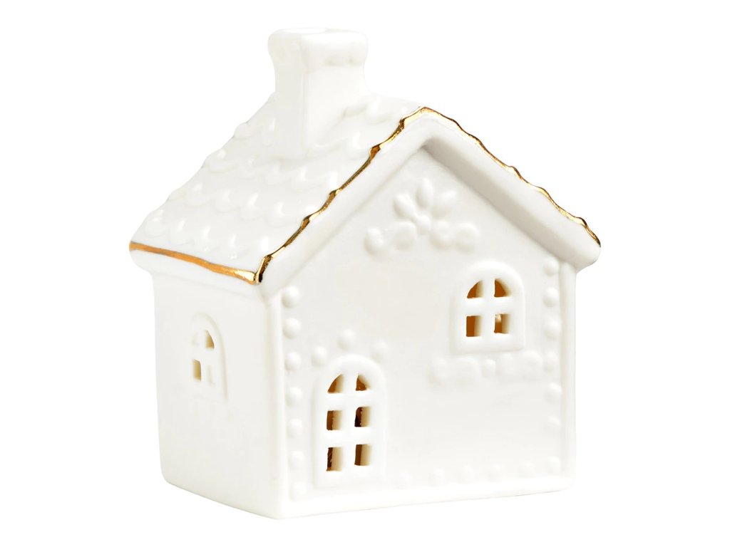 LED domček (okrem 3xLR44) vyrobený z porcelánu, biely (šírka/výška/hĺbka) 8x9x6cm