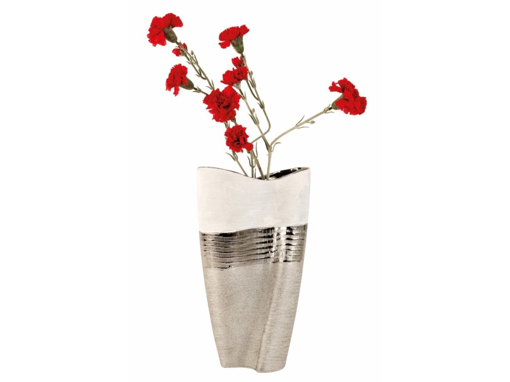 Moderná veľká váza so strieborným/bielym vzorom, výška: 35 cm