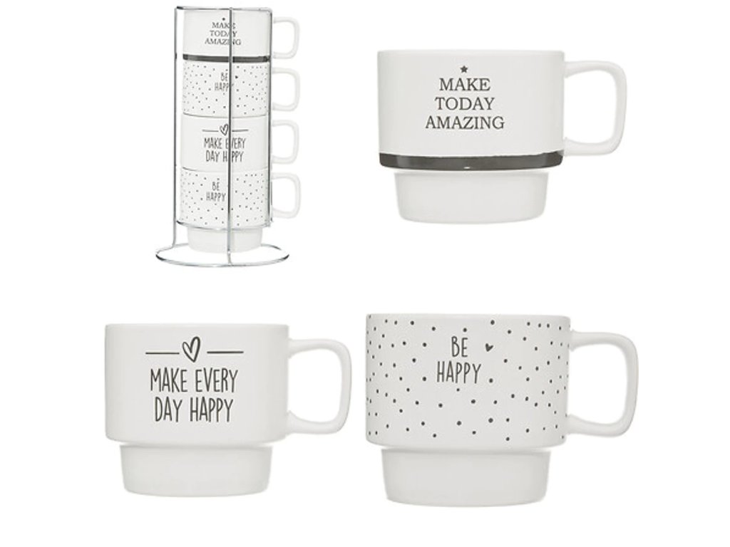 Sada 4 keramických šálok (každá s objemom 220 ml) - ideálne na kávu, čaj alebo kakao