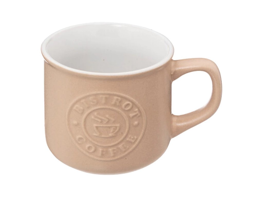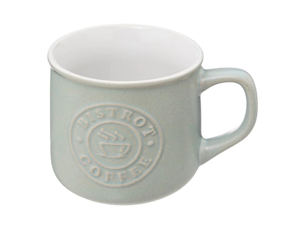 Štýlová sada porcelánových hrnčekov 140ml v rôznych farbách v stojane, pričom každý má iný dizajn. Celá sada pôsobí jednoducho a elegantne.